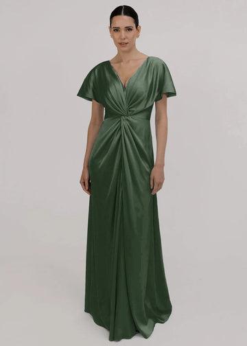 Camilla gown has been tailored to ensure it accentuates your figure at every angle. This stretch satin dress has a bodice with twisted knot detailing with a A-line skirt that falls elegantly to the floor. Complimented with a flattering sleeve and keyhole back detail that enables a bra to be worn.