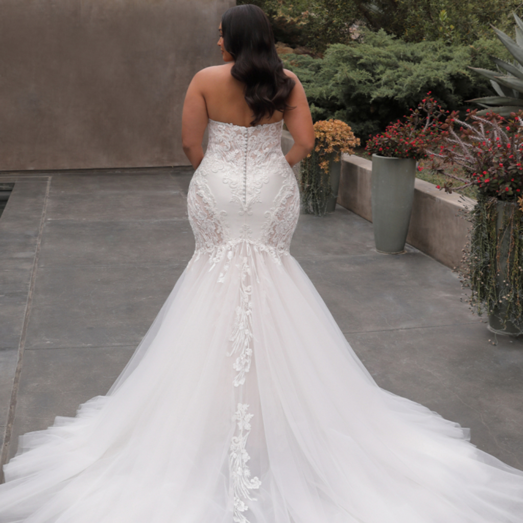 Elegance is effortless with the Dianna x Édition gown, featuring a sexy plunging strapless sweetheart neckline on a fully lined bodice adorned with hand beaded floral baroque lace and Chantilly lace. Illusion side panels elongate and contour the figure while highlighting the sumptuous Mikado, organza and tulle mermaid skirt.
