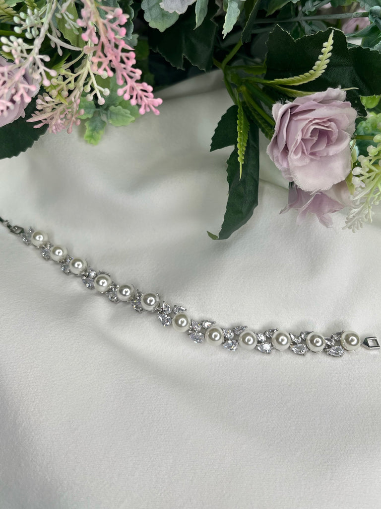The Tara bracelet is a stunning addition to your wedding day that adds all the sparkle and pearl you need.